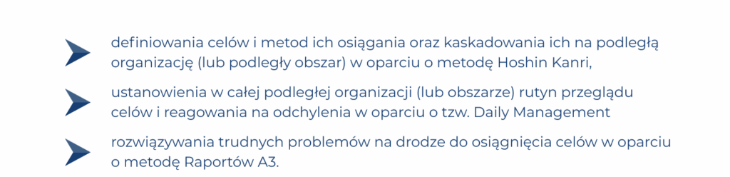 obejmuje wdrożenie w swojej organizacji procesu ustanawiania i monitorowania celów oraz angażowania ludzi w ich osiąganie.