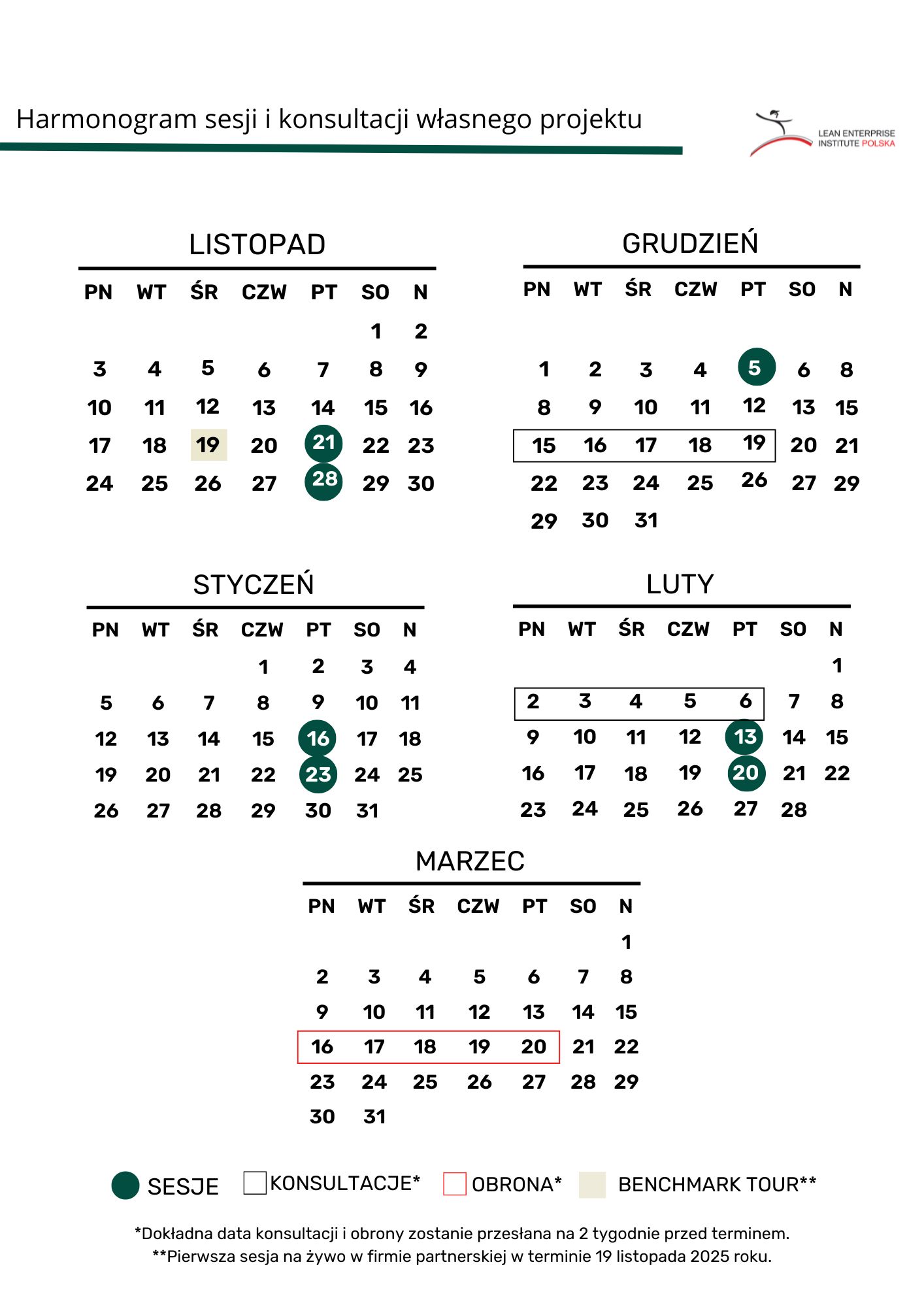 uznany w Polsce i za granicą, sygnowany logo Lean Enterprise Institute Polska oraz Lean Global Network
